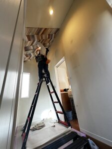 素敵なお家を大々的にリフォーム🪜🔨🙌まずは天井が高い玄関と寝室の天井一部から施工しました!天井はお家の顔なので大胆に💫寝室は横メジがクラ